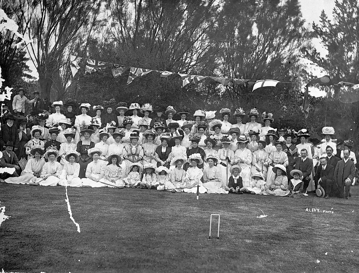 Group portrait at the Eaglehawk croquet lawn, Canterbury Park.