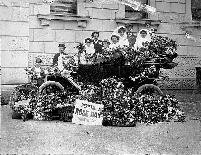 Baskets, Ceremonies, Decorations, Flowers, Fundraising, Hospitals, Motor Cars, Nurses