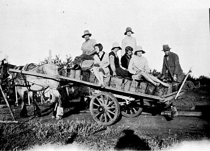 Agricultural Workers, Dip Tins, Drays & Wagons, Families, Farms, Fruit Pickers, Grapes, Horsedrawn Vehicles, Vineyards, Viticulture, Working Life, Farmers, Rural Women, Rural Life, Women Farmers, Women on Farms, Women in Agriculture, Women's Work