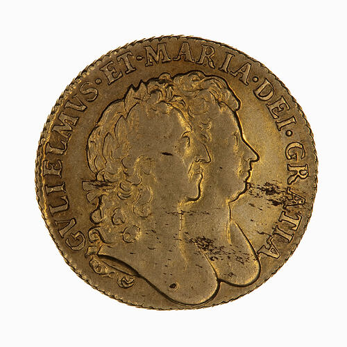 At that time the value of British coins depended on the value of the metal they contained. The gold guinea, introduced in 1662 as a 20 shilling coin, now began to vary in terms of how many shillings it was worth. This was because the relative value of silver and gold varied in daily trade and the quality of the silver coins in circulation declined through wear and clipping. During the first years of their joint rule the guinea varied from 21 shillings and 6 pence to 30 shillings.
