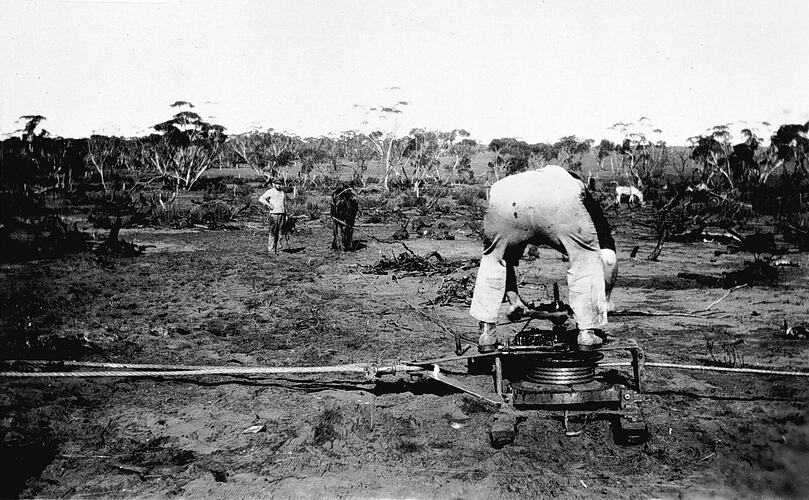 Using a winch to clear Mallee scrub.