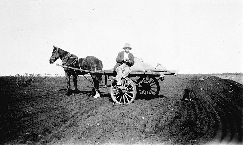 Agricultural Workers, Cereal Crops, Dogs, Domestic Animals, Farms, Horsedrawn Vehicles, Sacks