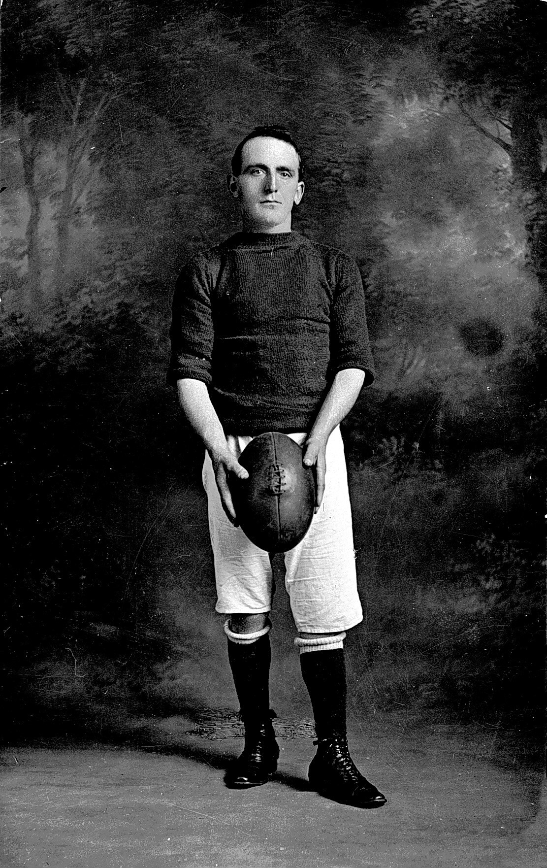 A studio portrait of a football player.