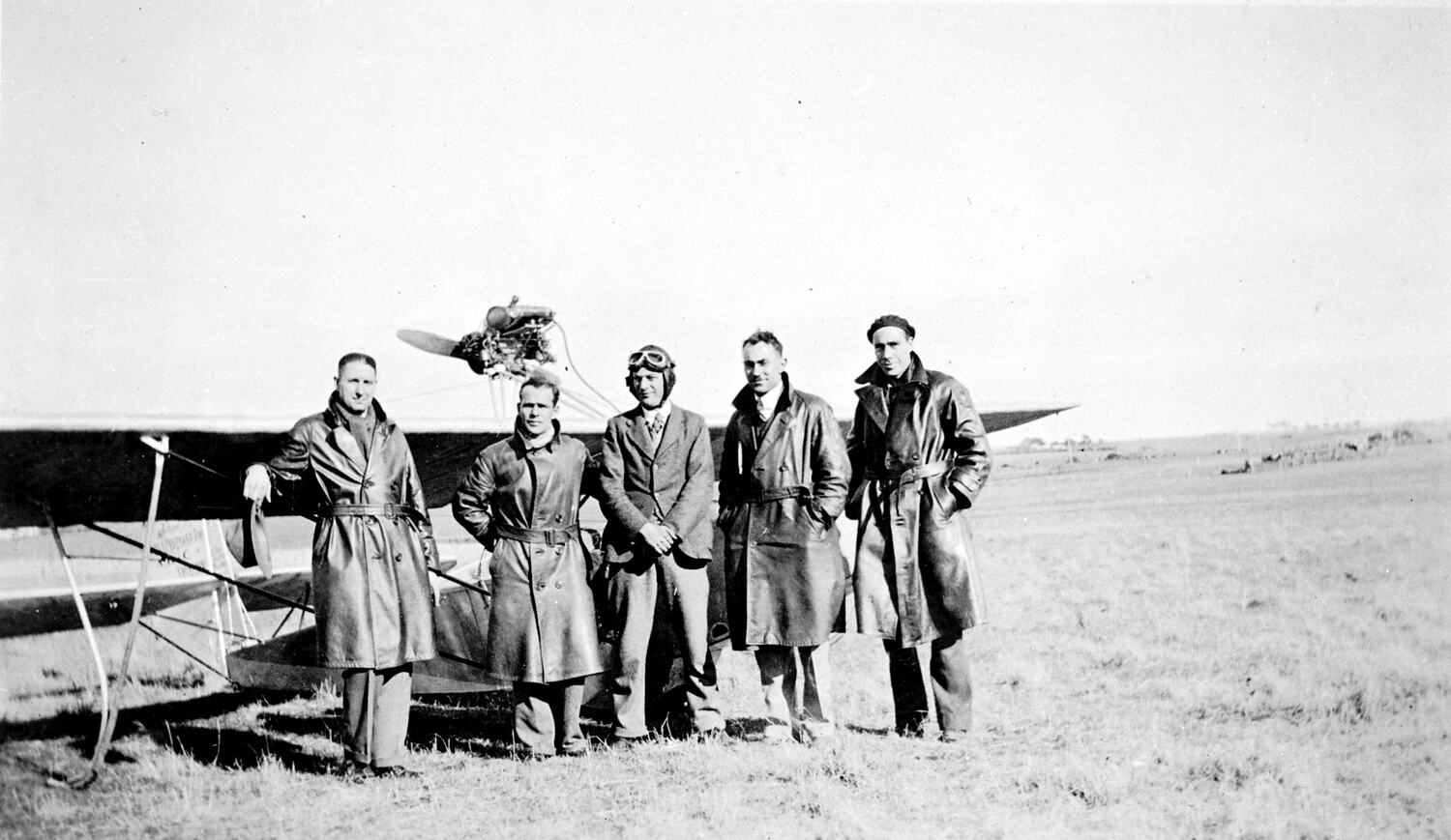 Five men beside a home-built glider.
