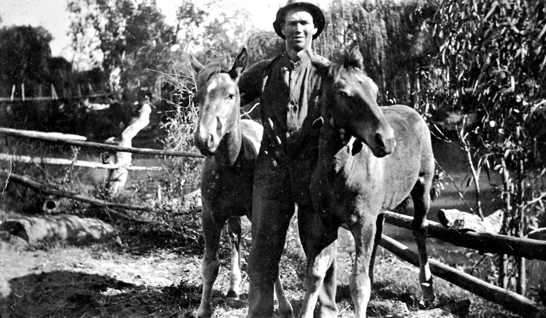 A man with two horses.