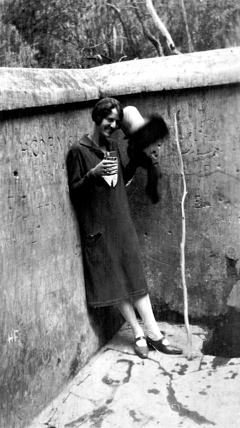 A woman drinking mineral water at Tipperary Springs.
