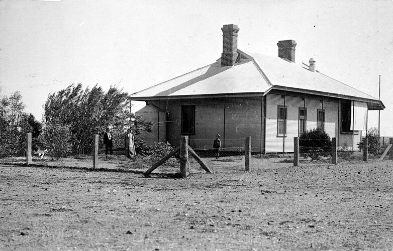 A teacher and his wife outside the school at Maree.