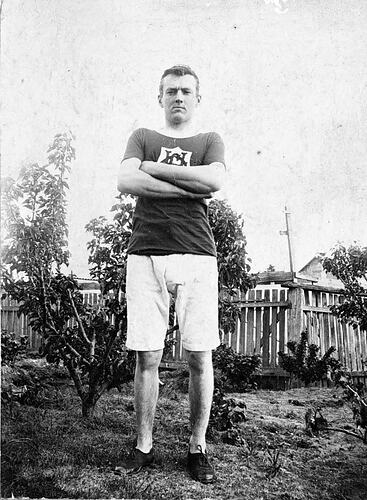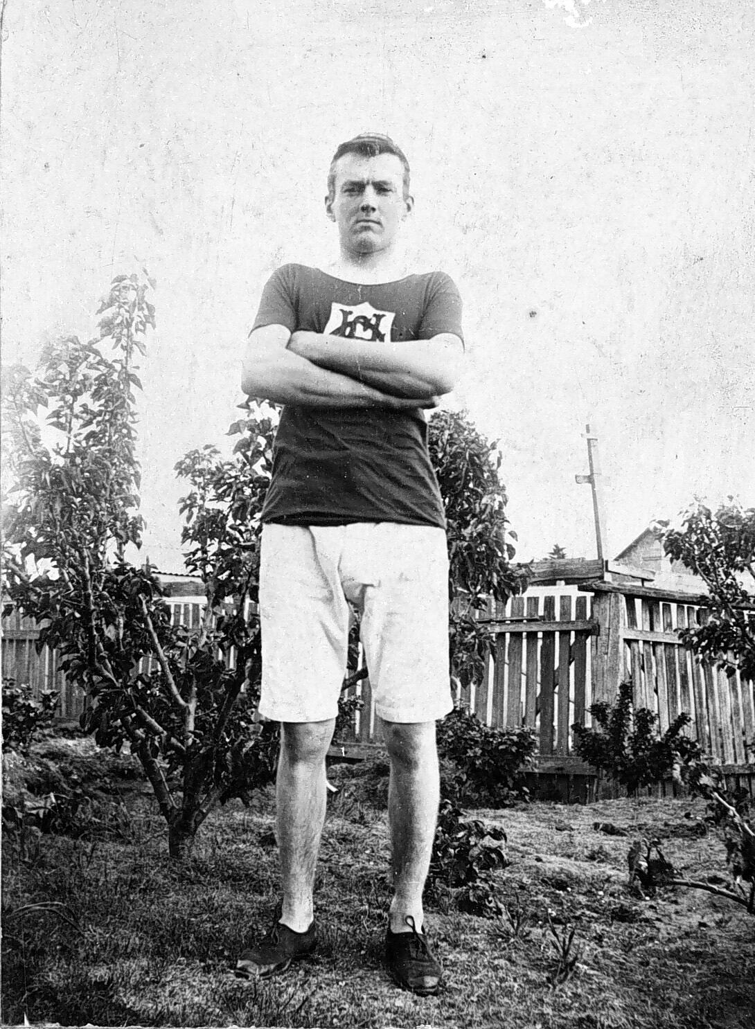 An athlete standing in a garden.