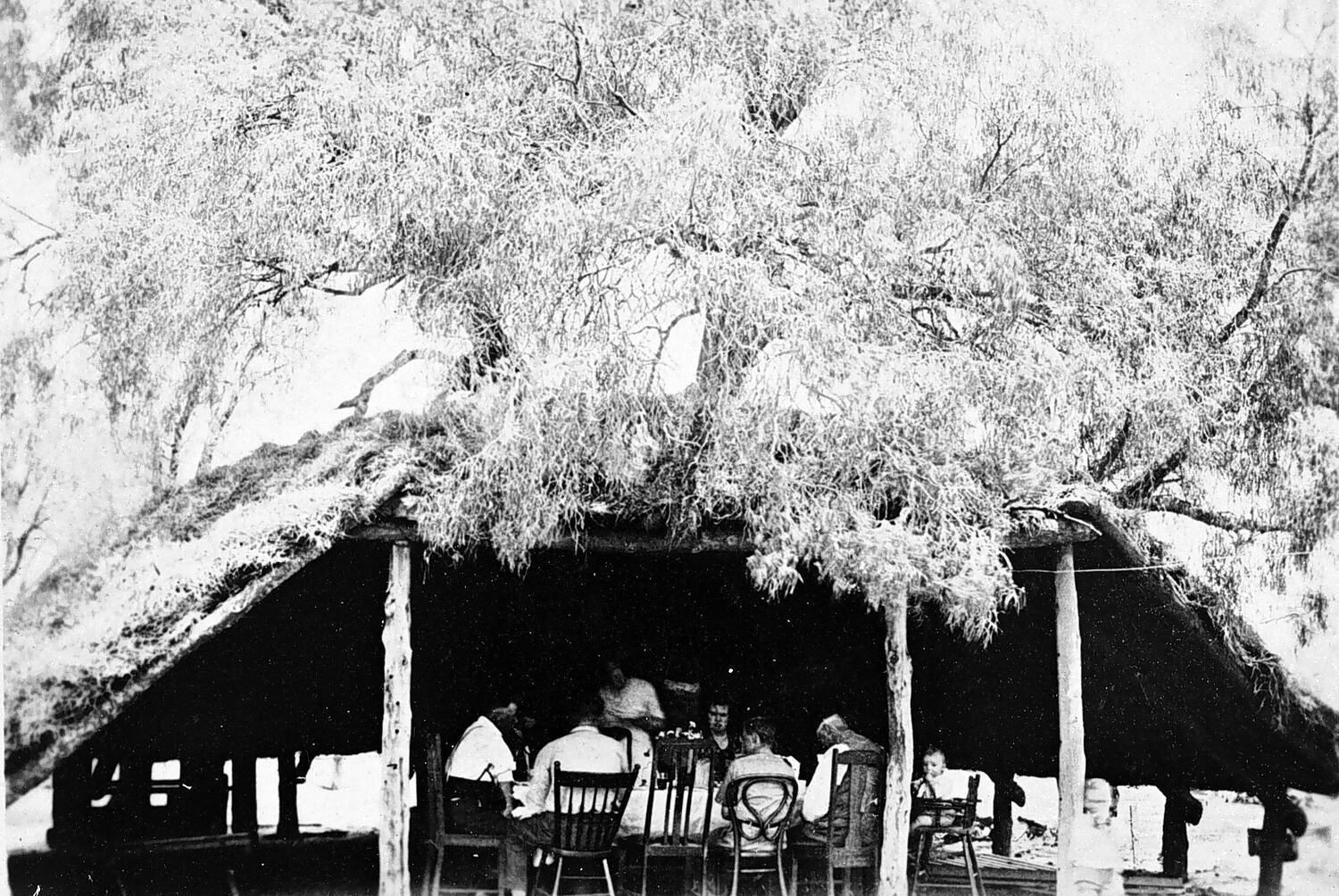 Christmas dinner in a bush shelter on 'Pine Tank' station.