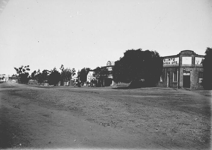 Streetscape of Charlton West, Victoria, including Hotel Avoca, 14 April 1898.