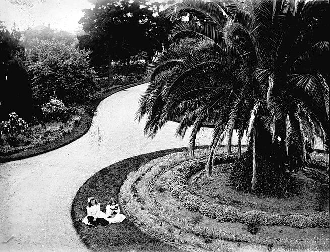 Nellie and Kathleen Beckett on the front lawn of 'Chelmer', 340 St Kilda Road, 1904. Chelmer was the family residence of the Beckett family from 1904.