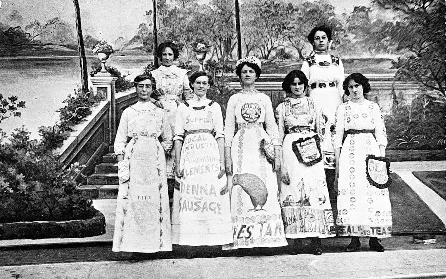Women passengers boarding a stage coach in Pakington Street, Geelong West. Nicholson, Cash Grocers is on the left and Francis Bennell, Chemist, on the right.