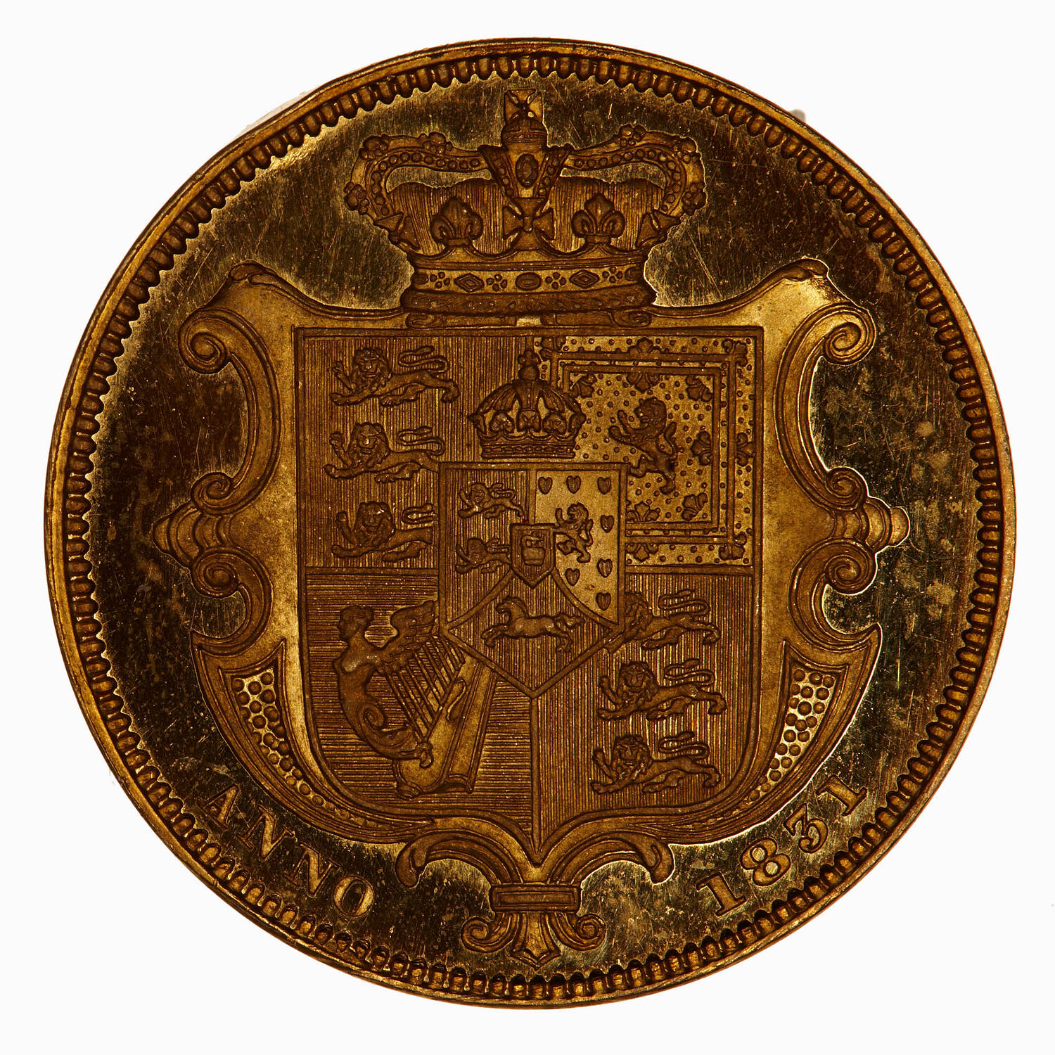Bare head of William IV facing right; incuse on truncation of neck the artist's initials WW (William Wyon); around, GULIELMUS IIII D:G: BRITANNIAR: REX F: D:
