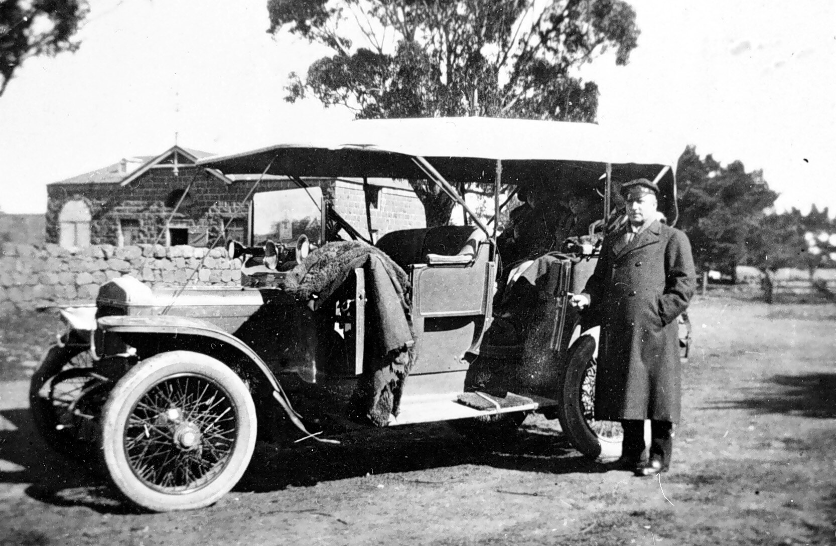 The chauffeur beside a car on 'Borriyallock' station.