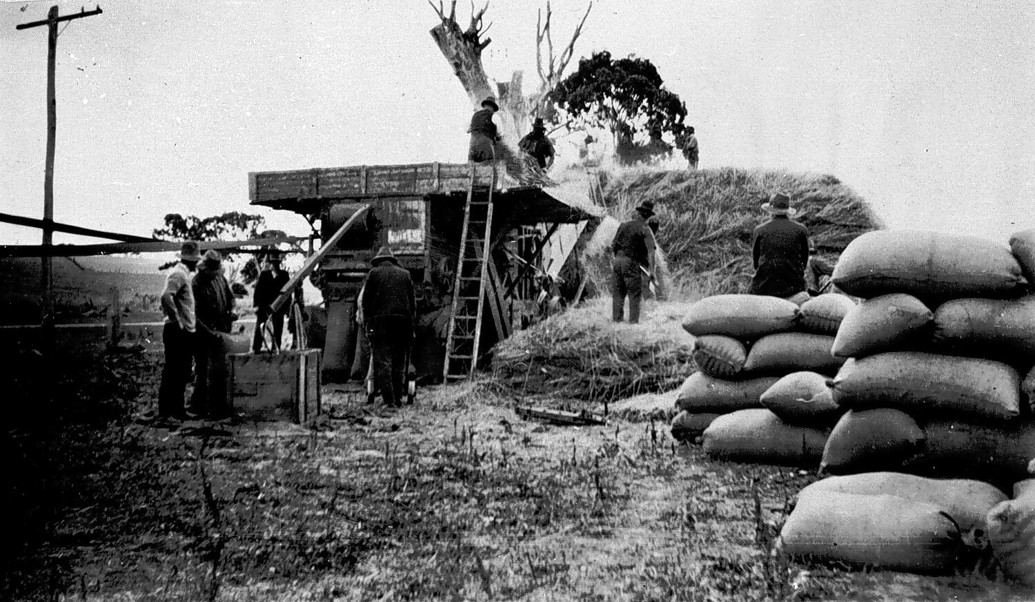 A threshing team at work on 'Hillgrove' station.