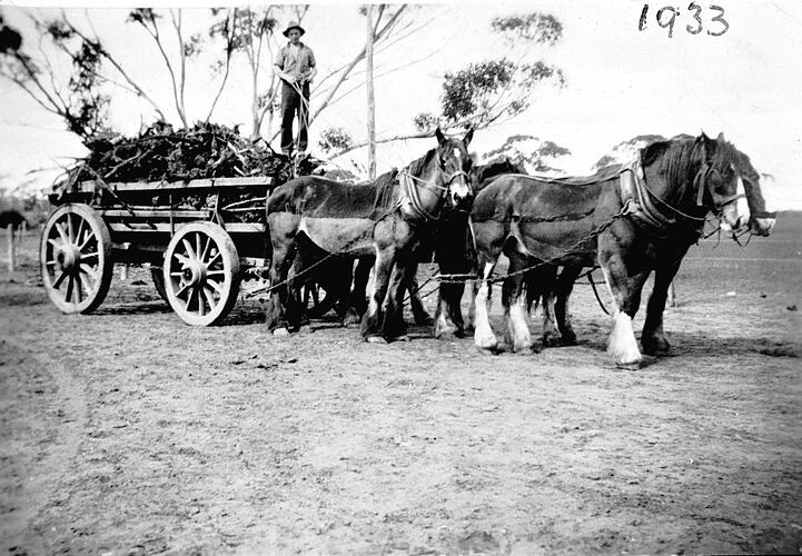 Agricultural Workers, Farms, Horsedrawn Vehicles, Horses, Mallee Roots