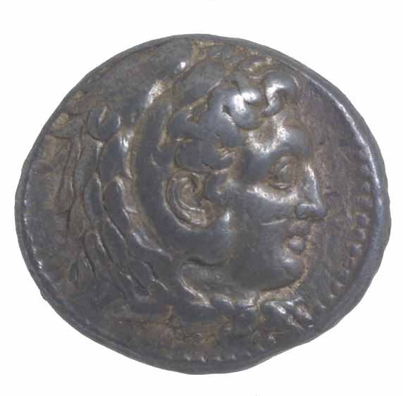 A silver tetradrachm coin issued by King Philip III of Macedonia in the period 323-317 BC