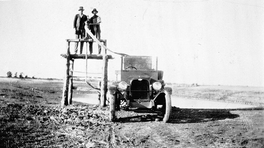 Agricultural Equipment, Agricultural Workers, Dams, Farms, Motor Trucks, Pumps, Water Supply, Water Tanks