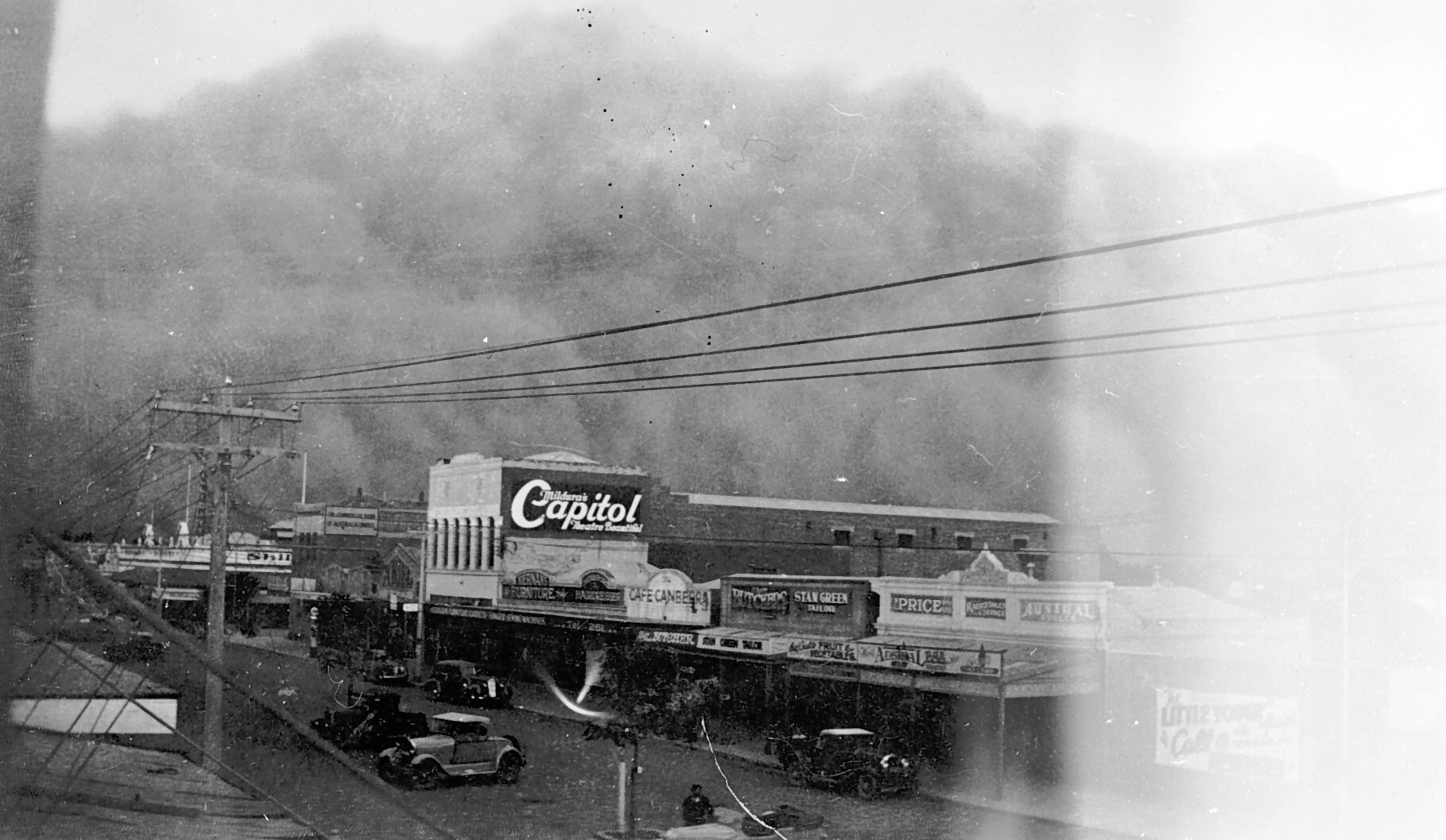 Advertising, Dust Storms, Motor Cars, Natural Disasters, Shops, Theatres