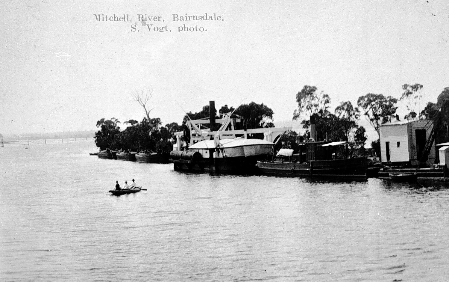 Printed in black across top of photograph: "Mitchell River, Bairnsdale. / S. Vogt, photo."