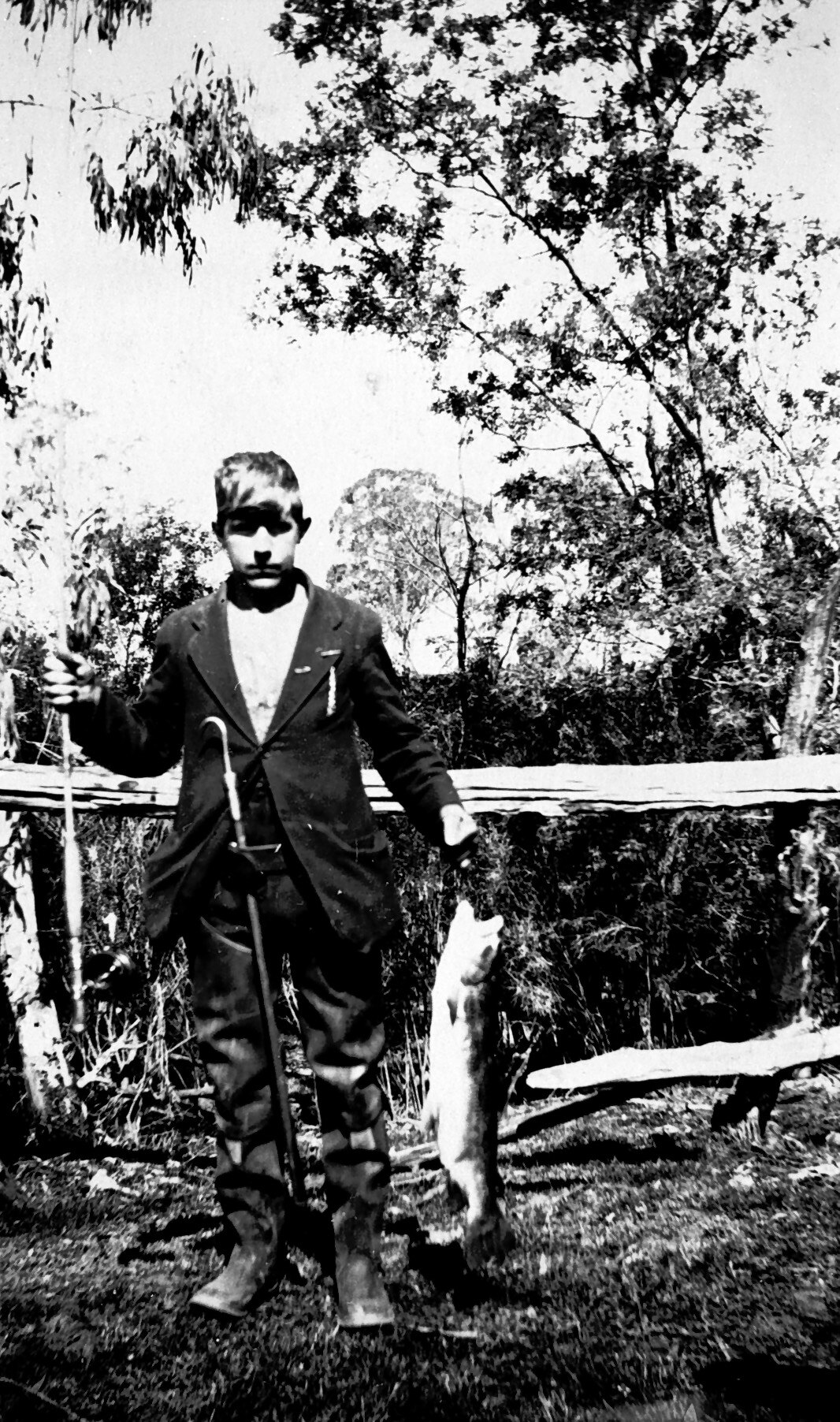 A young boy with a trout.