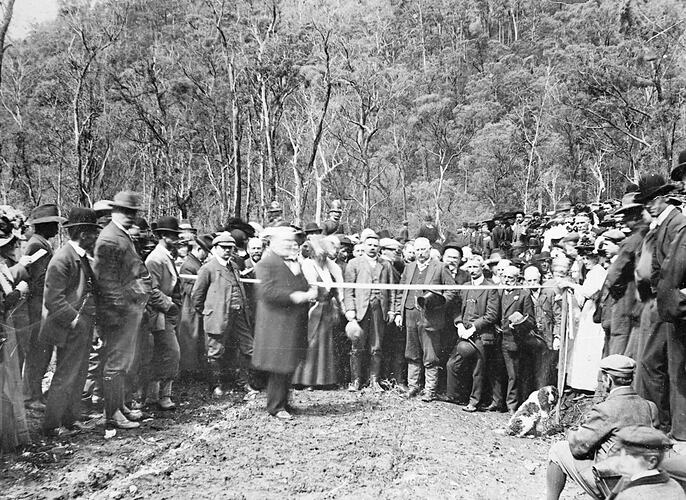 Opening of road up to Mt Buffalo by the Victorian Premier, Thomas Bent.