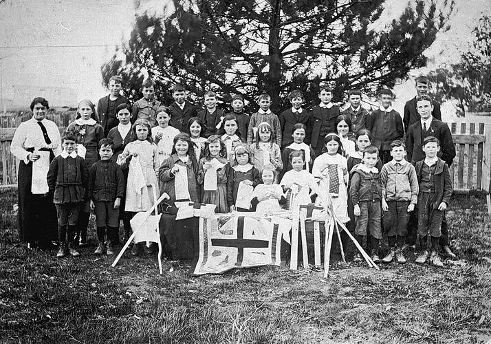 School children working for the red cross at the Lauriston State School.