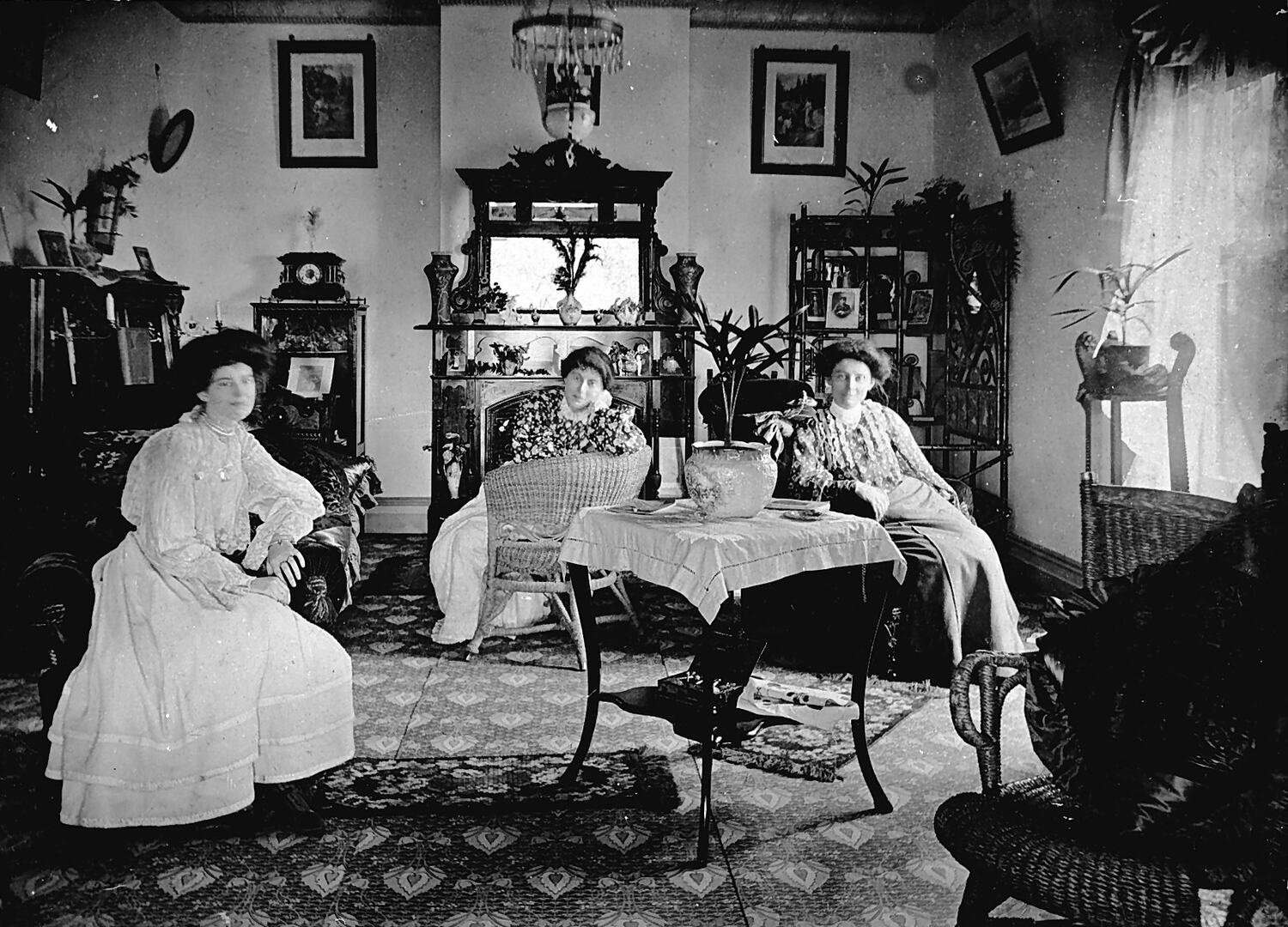 Three women in the sitting room at 'Lillesden Park' station.