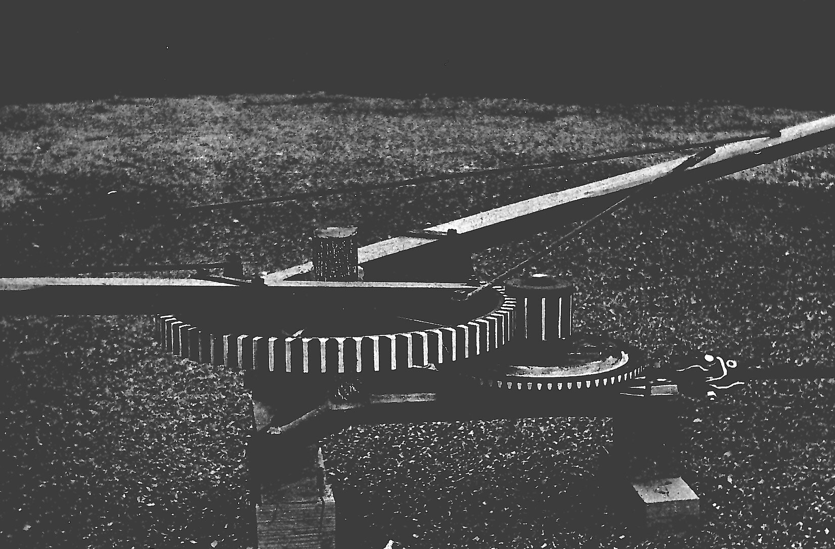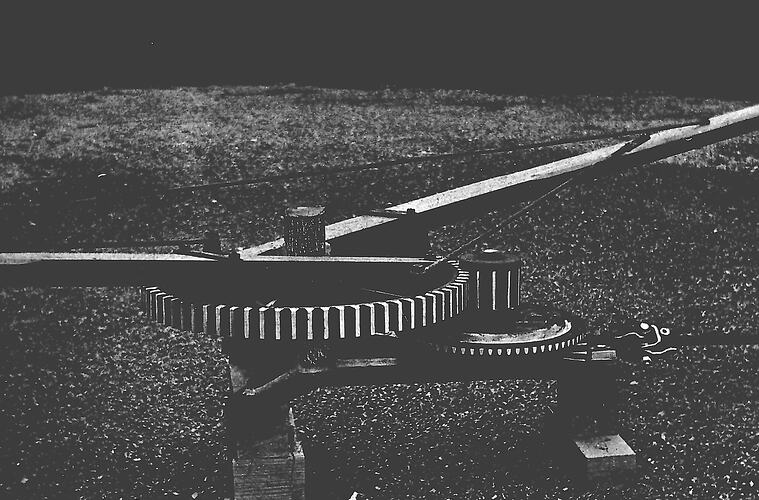 Detail of horseworks mechanism, showing gearing and attachment of horse-shafts. Horseworks were widely used during the 19th century and early 20th century for driving agricultural machinery and occasionally in other industries such as mining. Note: This image was previously incorrectly described as a "Horse Whim".