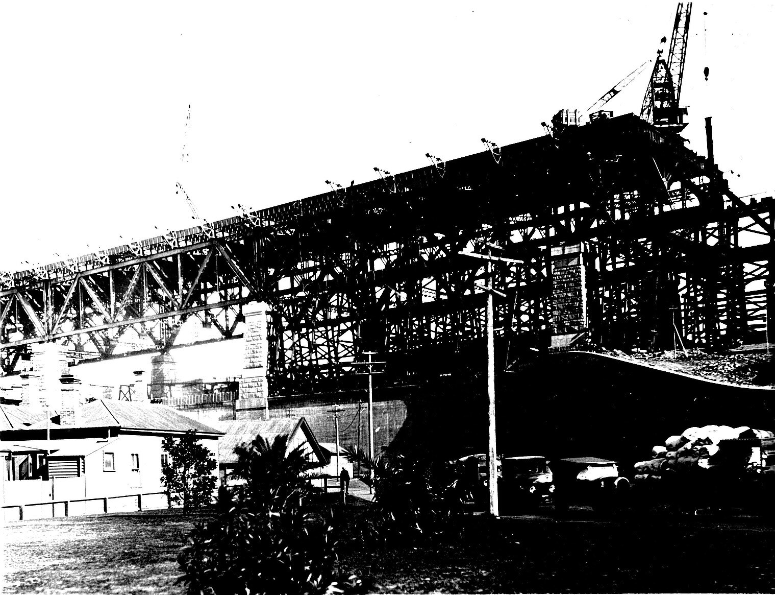 Construction of the approaches to the span of the Sydney Harbour Bridge.