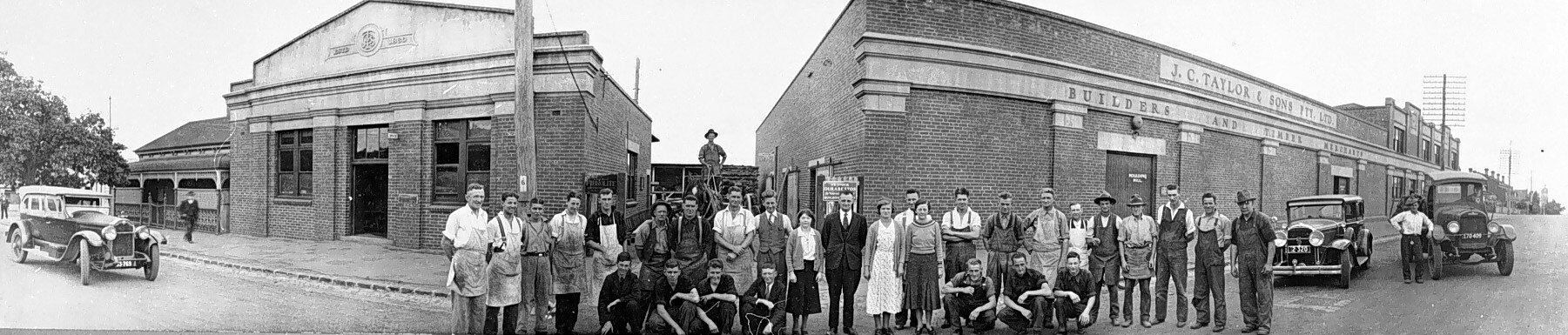 Workers in front of the building of J.Taylor & Sons Proprietary Limited.