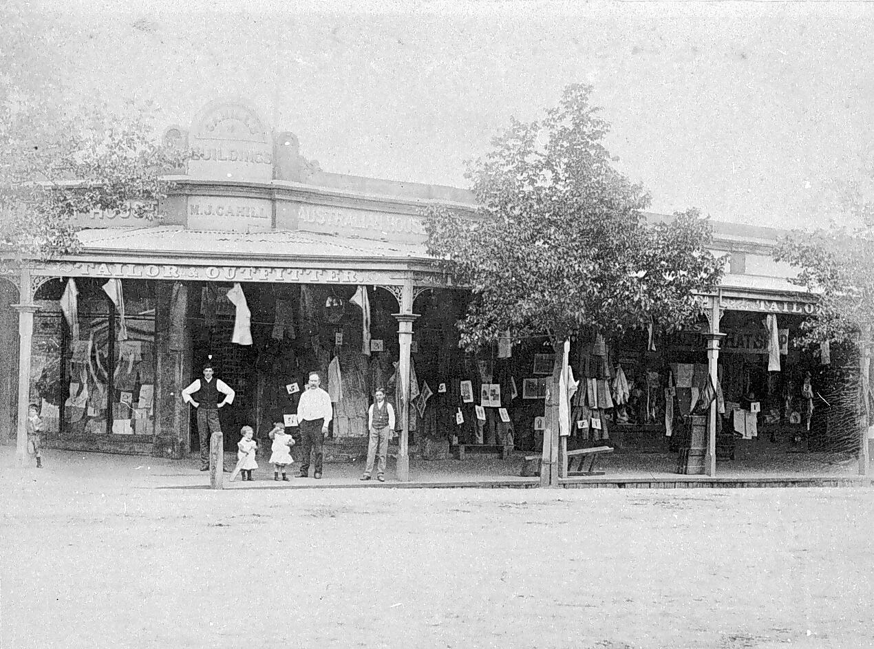 M.J. Cahill, Tailor & Outfitter, High Street & Short Street, Bendigo, Victoria, Australia, 1890