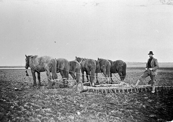 Agricultural Equipment, Agricultural Workers, Farms, Harrows, Horses, Workers