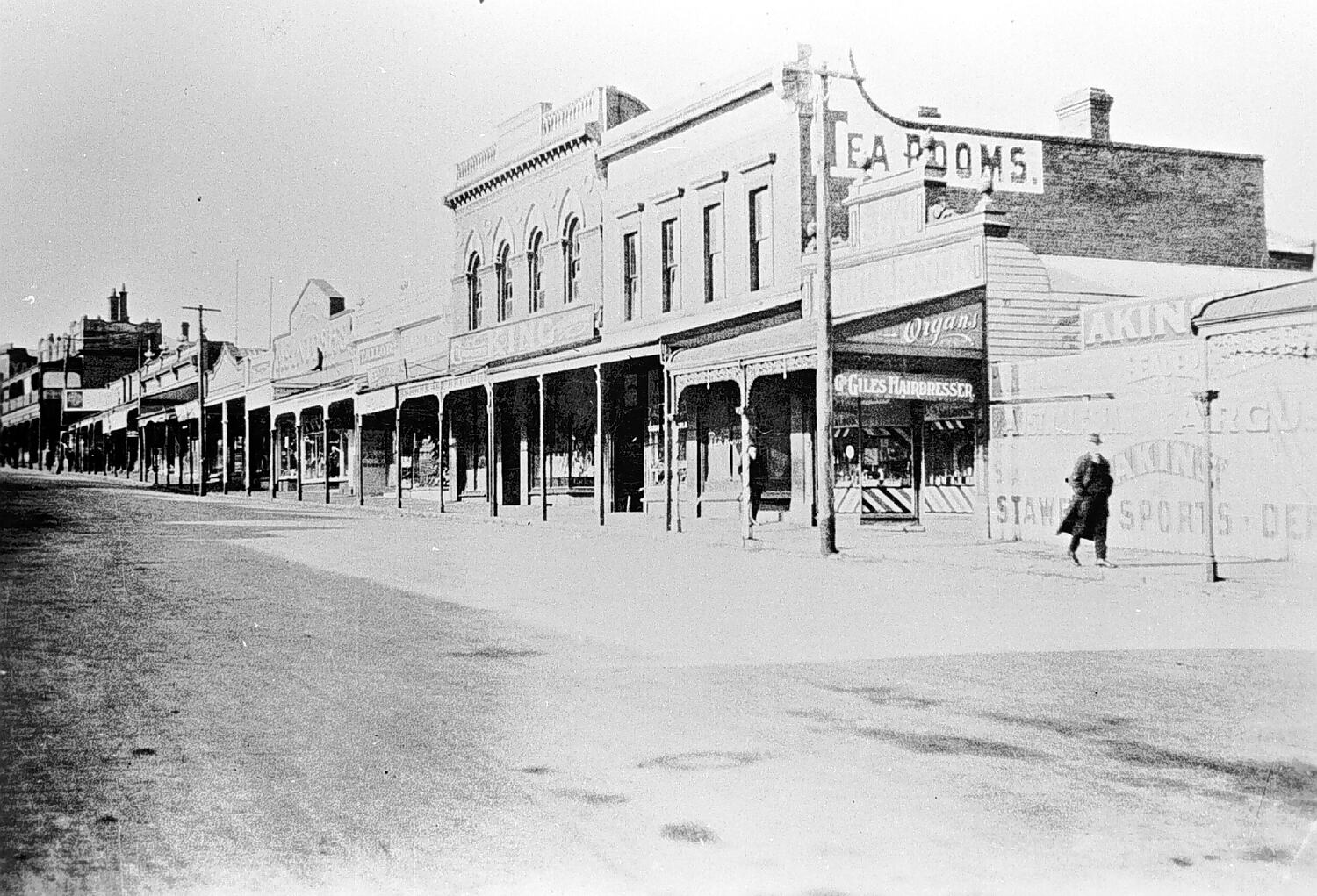 The main street in Stawell. The Stawell Sports Depot is on the right, next to it a hairdresser and some tea rooms.