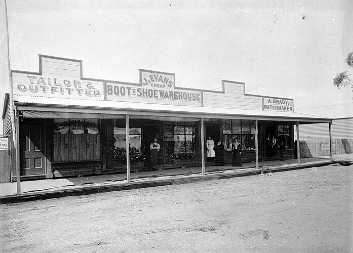 J Evans Cheap Boot & Shoe Warehouse, Donald District, Victoria, Australia, circa 1900