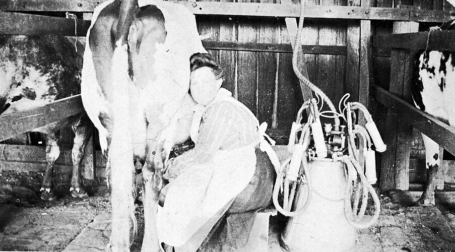 Agricultural Equipment, Agricultural Workers, Cattle, Dairies, Farm Animals, Farms, Milking Equipment, Farmers, Milking, Rural Life, Rural Women, Women on Farms, Women in Agriculture, Women Farmers, Women's Work