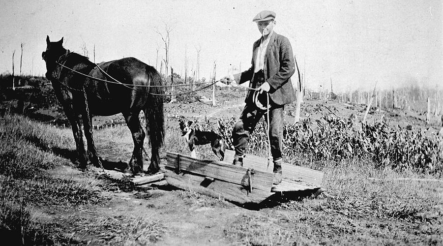 Agricultural Workers, Dogs, Domestic Animals, Farms, Horses, Maize, Sleds