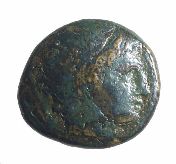 A copper coin issued by King Philip II of Macedonia in the period 359-336 BC