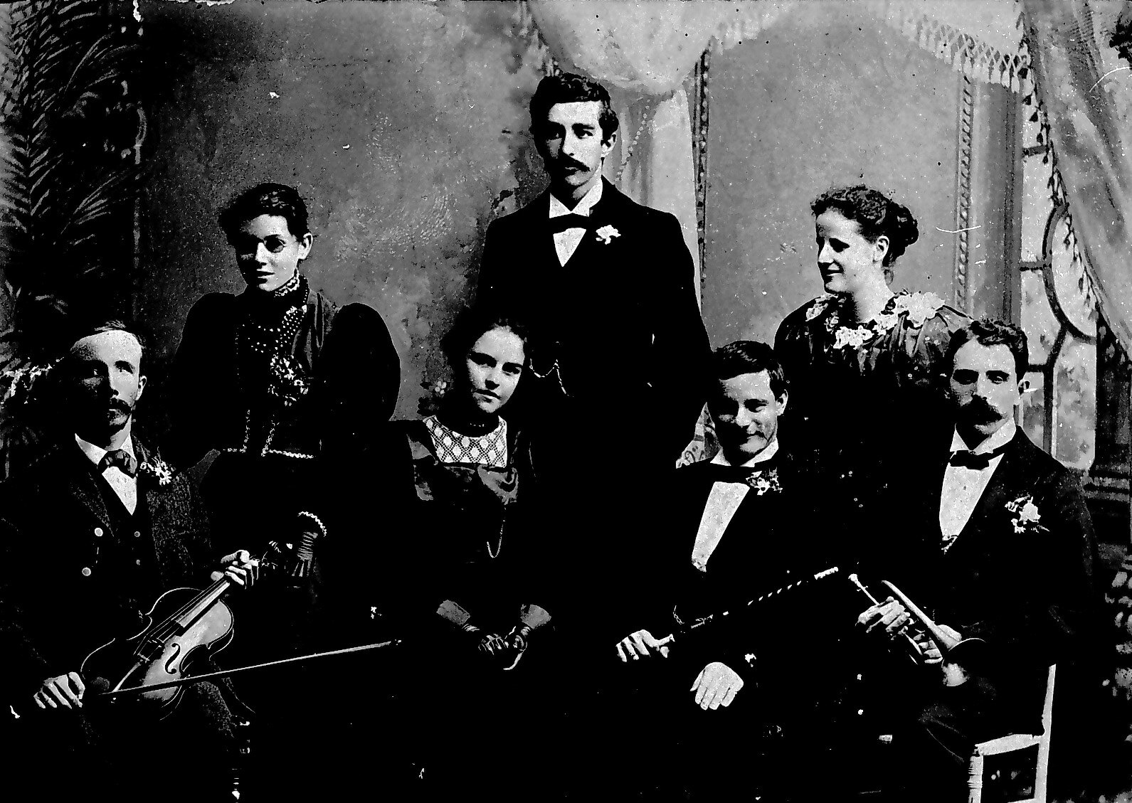 A group of men and women with musical instruments.