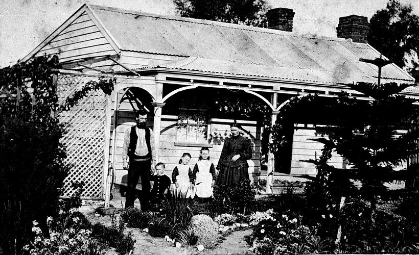 The Bartlett family in front of their home.