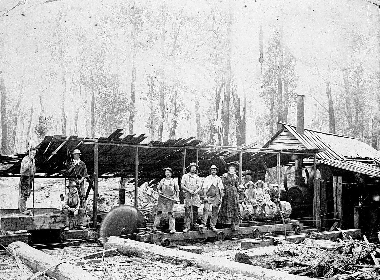 Bullock Drivers, Industrial Equipment, Portable Steam Engines, Sawmills, Timber Workers