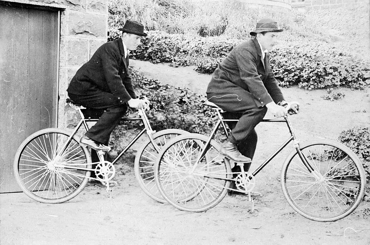 Arthur and Albert Buchter on bicycles.