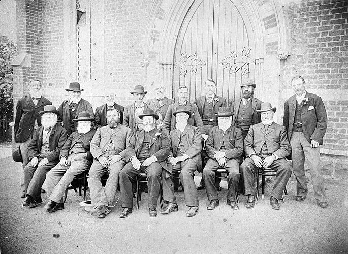 Trustees in front of the Drysdale Methodist Church.