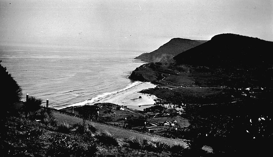 The coast at Stanwell Park. There is a road in the foreground.