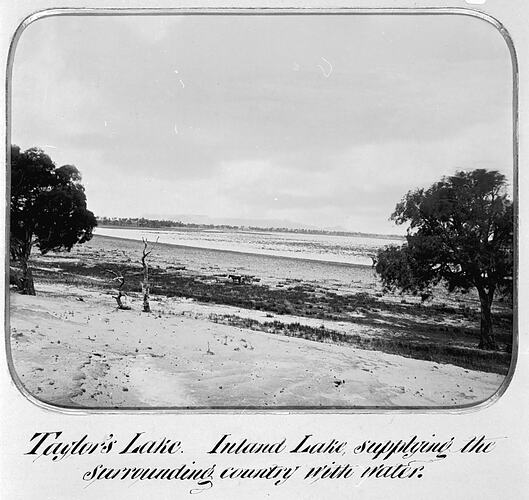 Taylor 's Lake. As indicated on the photograph, this is an 'inland lake'. It is located in the Wimmera, near Helen's Plains. This lake is also known as 'Lake Taylor'.