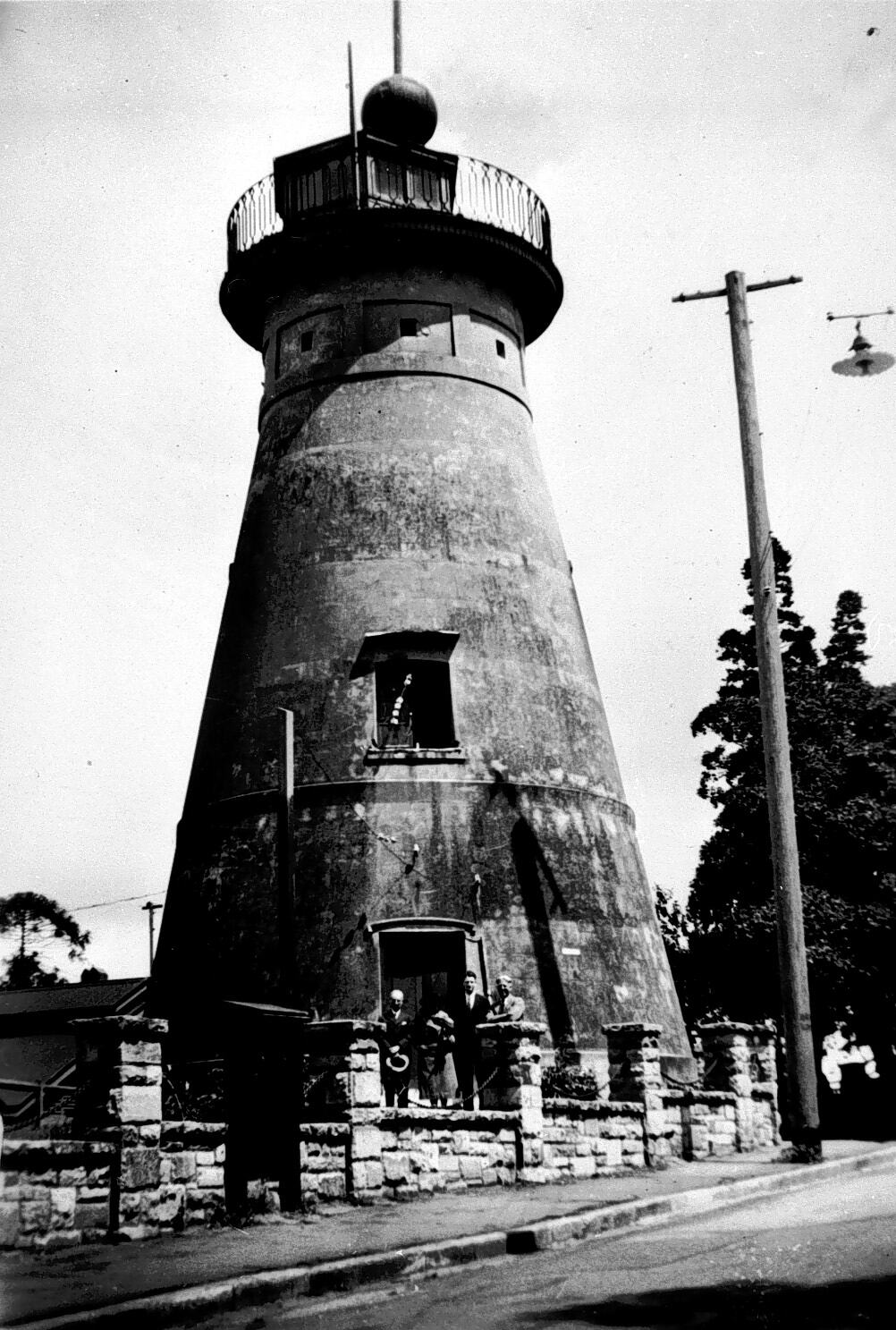 The Tower Mill on Wickham Terrace is one of the oldest convict-built structures in Queensland. It was constructed in 1828 for the purpose of grinding wheat and corn using windpower and an associated convict-operated treadmill. The mill ceased grinding grain in 1845 and the treadmill was removed sometime before 1849. In 1855, the colonial government established a signal station in the old mill tower to communicate shipping movements and time signals between the entrance of the Brisbane River and the central business district of the township. Renovations were undertaken in 1861 including the installation of the time ball mast visible on top of the tower in this image. The timeball was dropped from the head of the mast at precisely 1 p.m. each afternoon, enabling the regulation of clocks and ships' chronometers. In 1881, the government established a small astronomical and meteorological observatory on the adjacent reserve, relocating instruments previously used in a private observatory of the amateur astronomer Captain John Reilly (1824-1877), The signal station and timeball service was discontinued in 1921, and the following year the site passed into the trusteeship of the Brisbane City Council. Early radio, telephony and television communication research was undertaken within the tower during the 1920s, by members of the Institute of Radio Engineers.