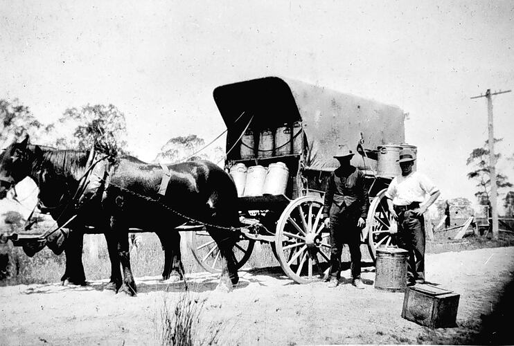 Collecting cream in a horse-drawn van.