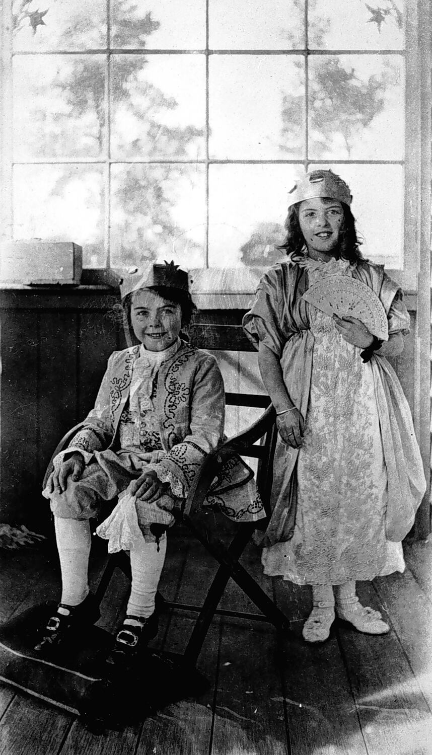 Two small girls dressed for a fancy dress function at the town hall.