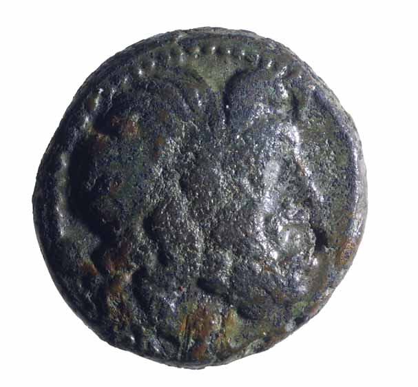 A copper coin issued by the city of Amphipolis in Macedonia in about 150 BC