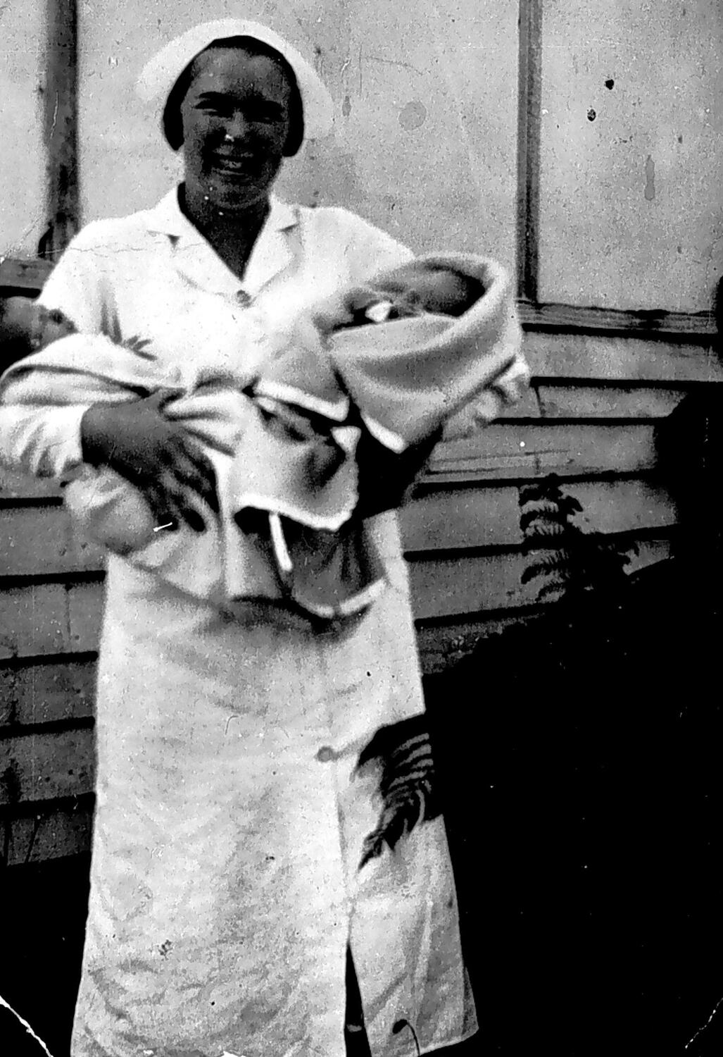 A bush nurse holding two three-day old babies at the Tumbarumba Bush Nursing Centre.